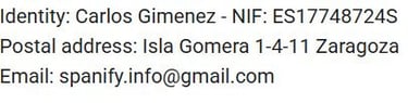 Identification: name and surnames, Tax ID number, postal address, telephones, email